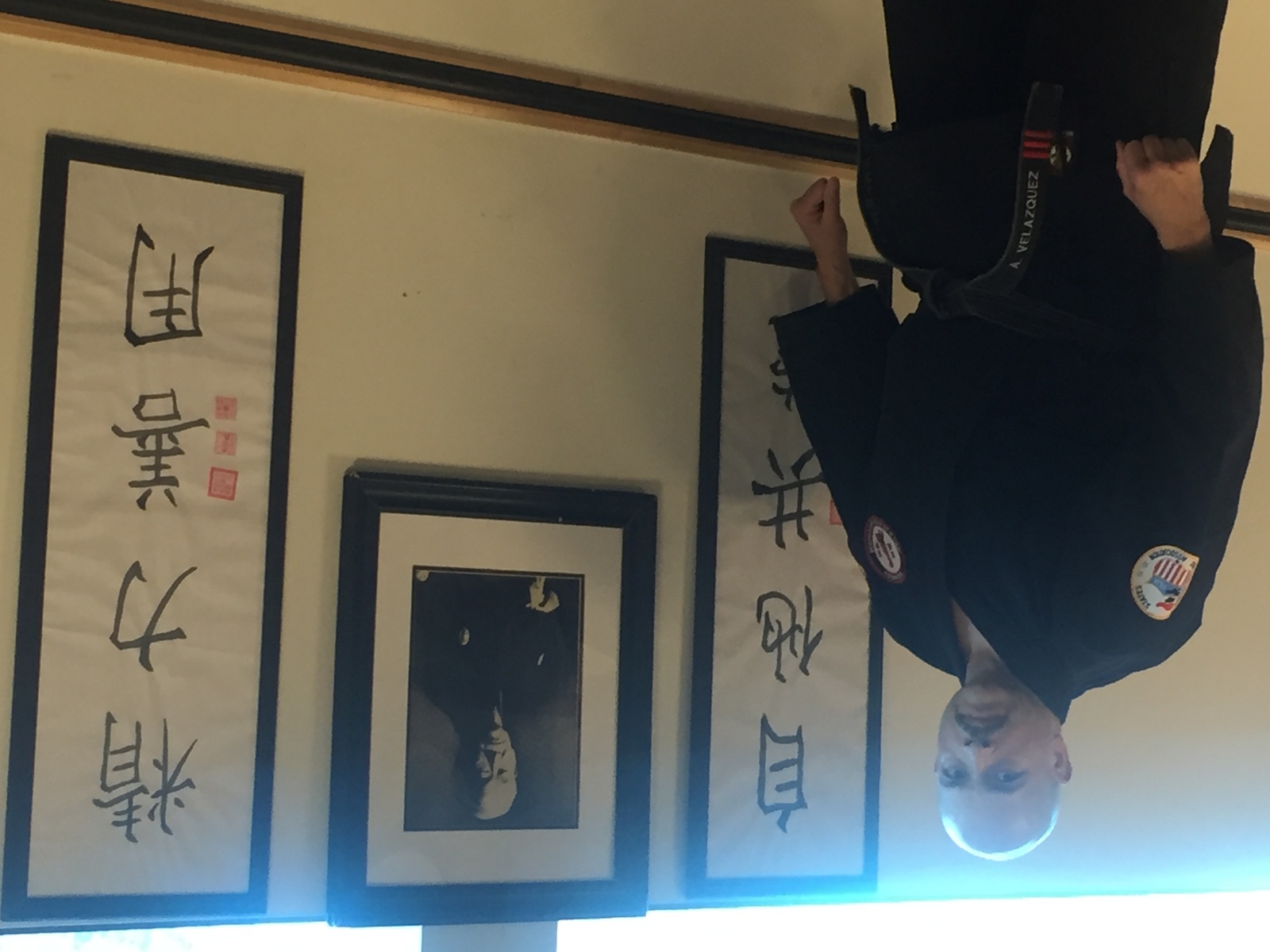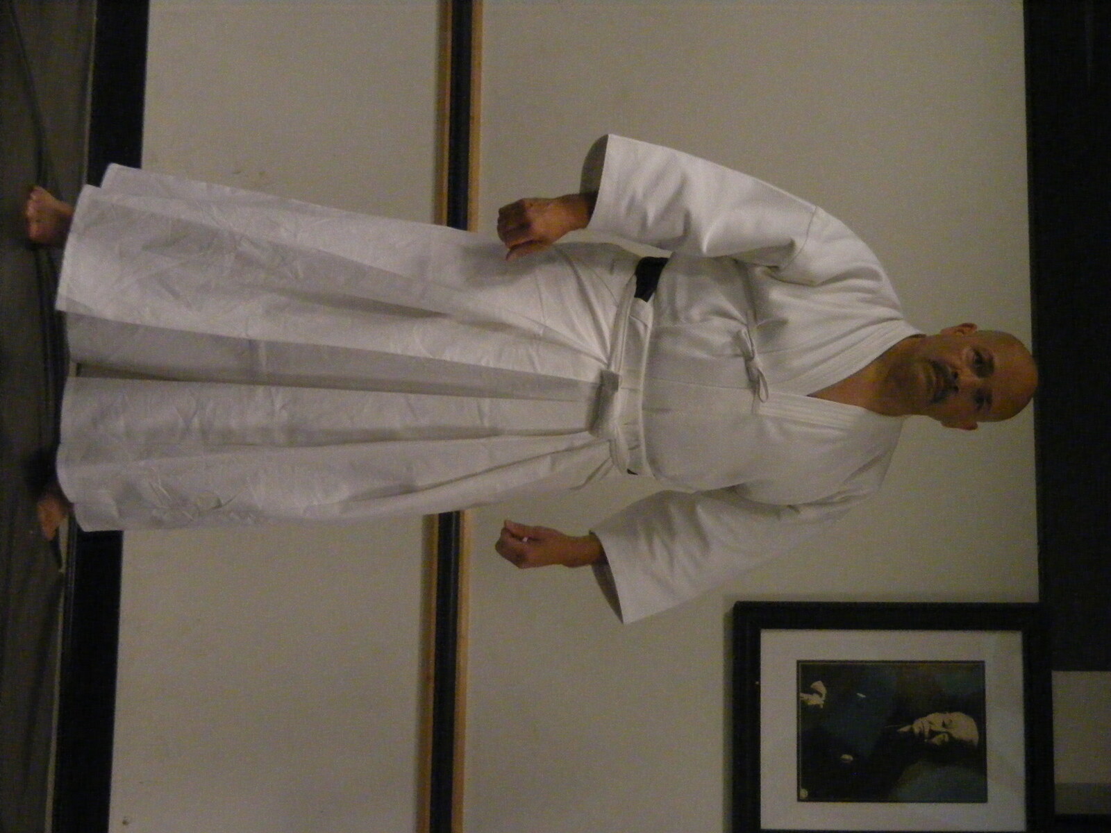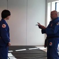 Sensei Little receiving Shichidan and Menkyo Kaiden Certificates